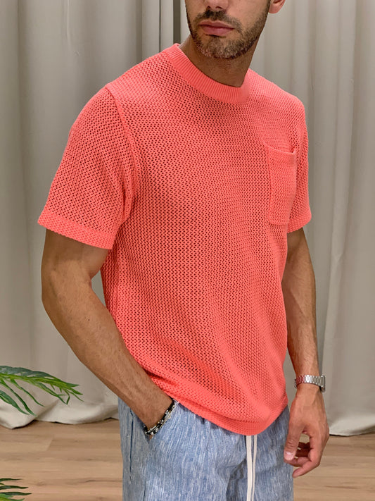 T-shirt traforata effetto Maglia con Taschino col. Aragosta