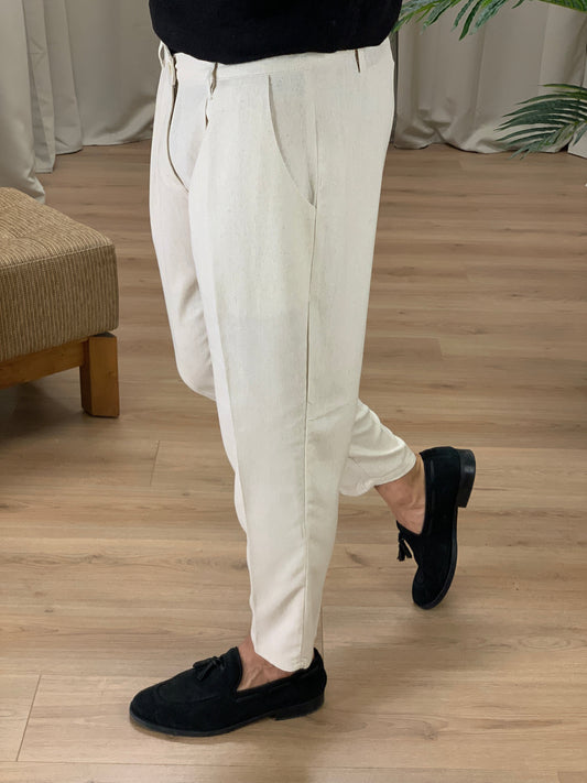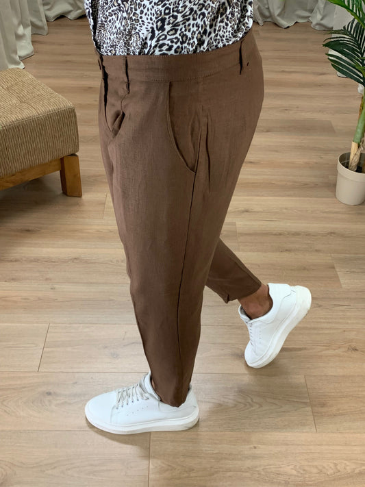 Pantalone Positano in Lino con Pinces col. Tabacco