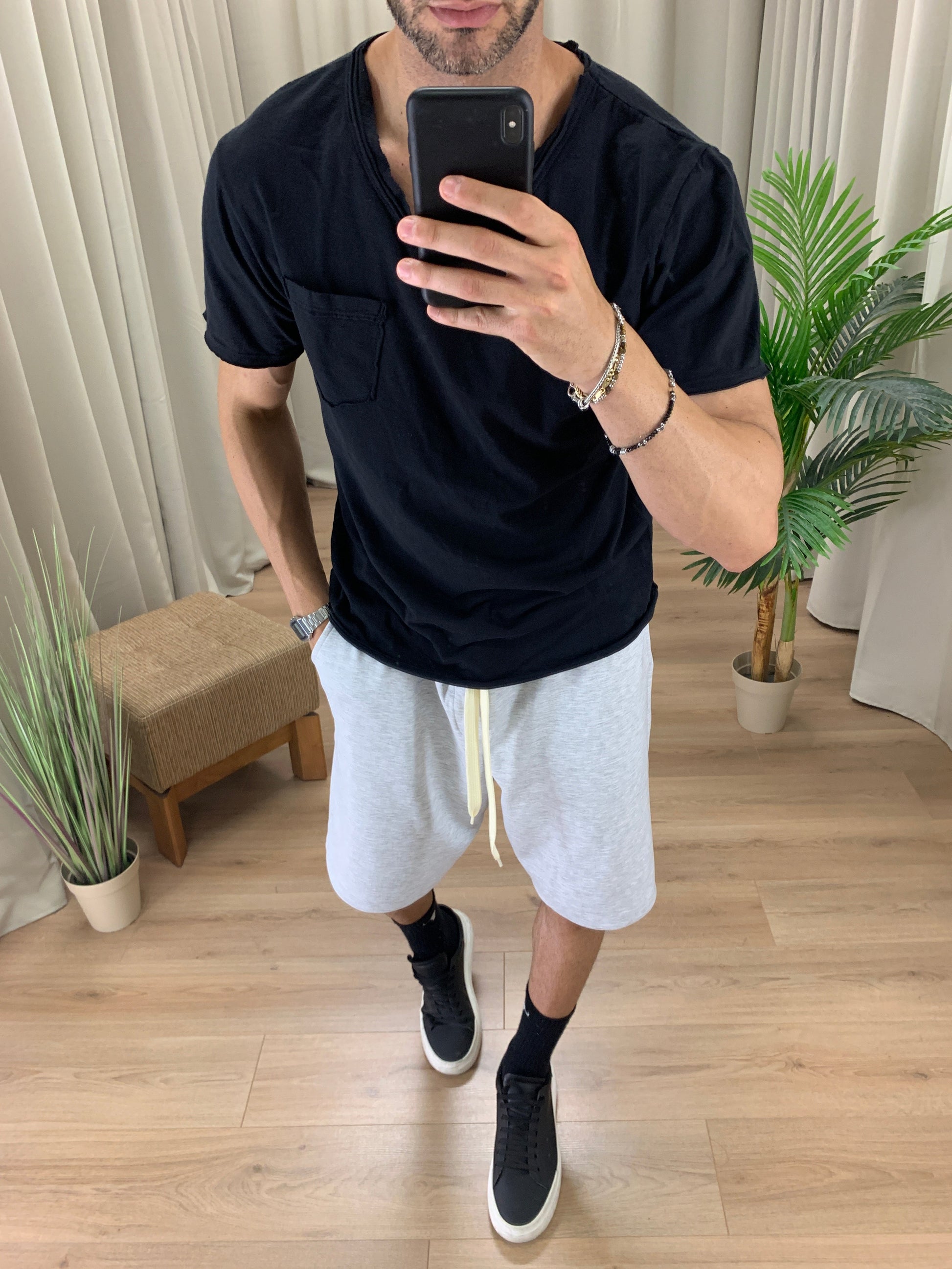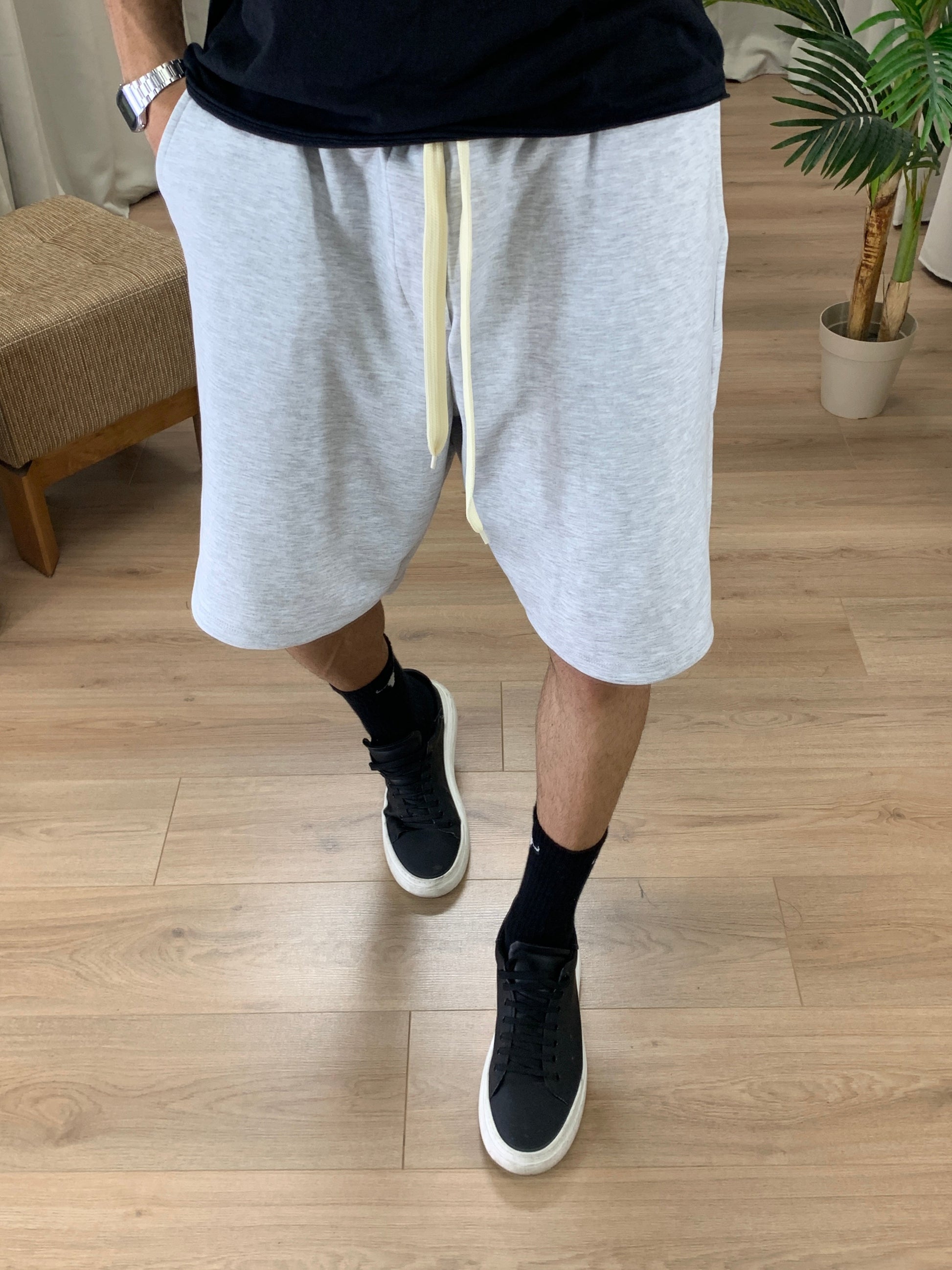 Bermuda Interlock Garzato con Elastico in Vita col. Grigio