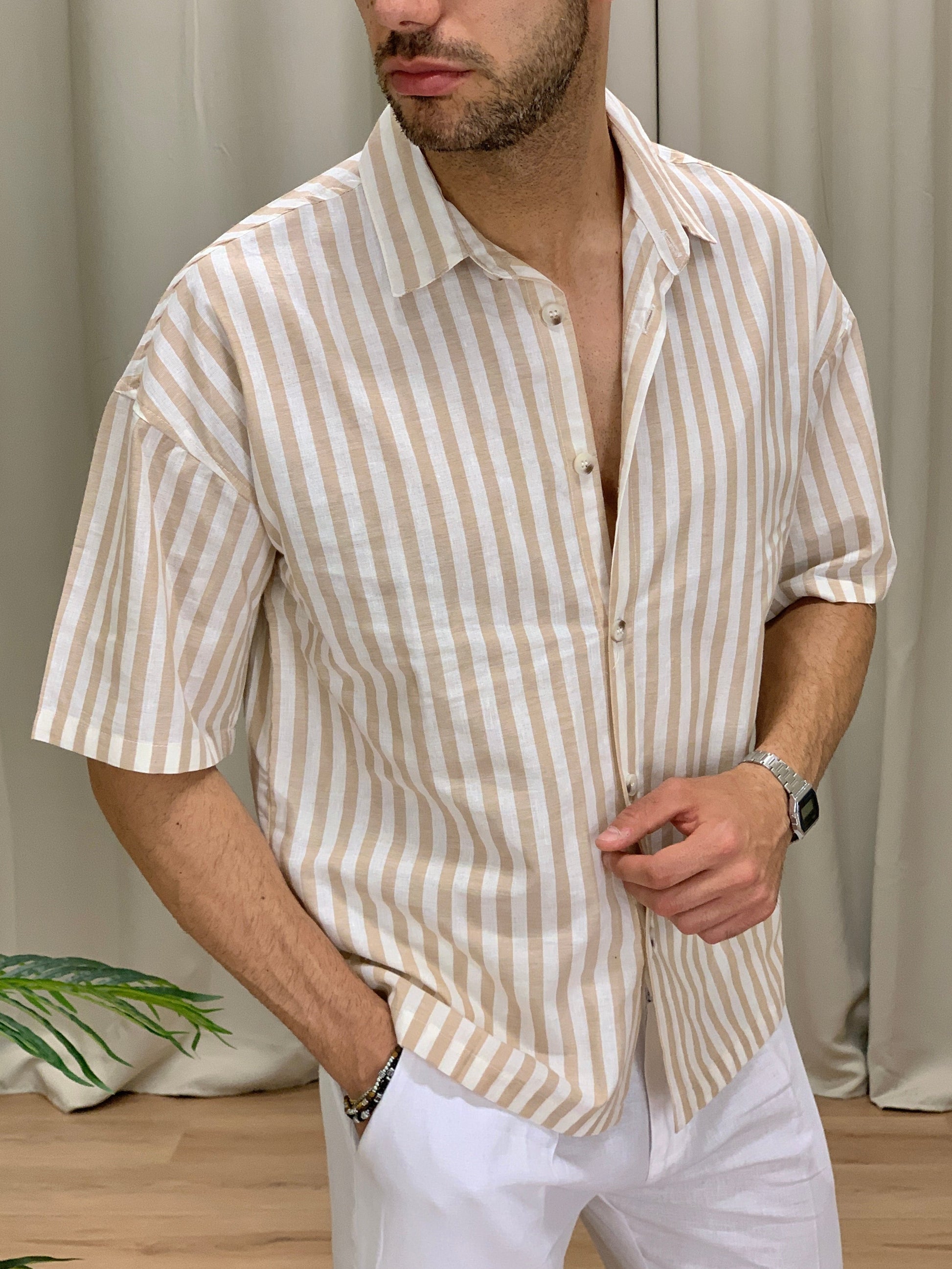 Camicia San Giorgio a Righe in misto Lino col. Beige