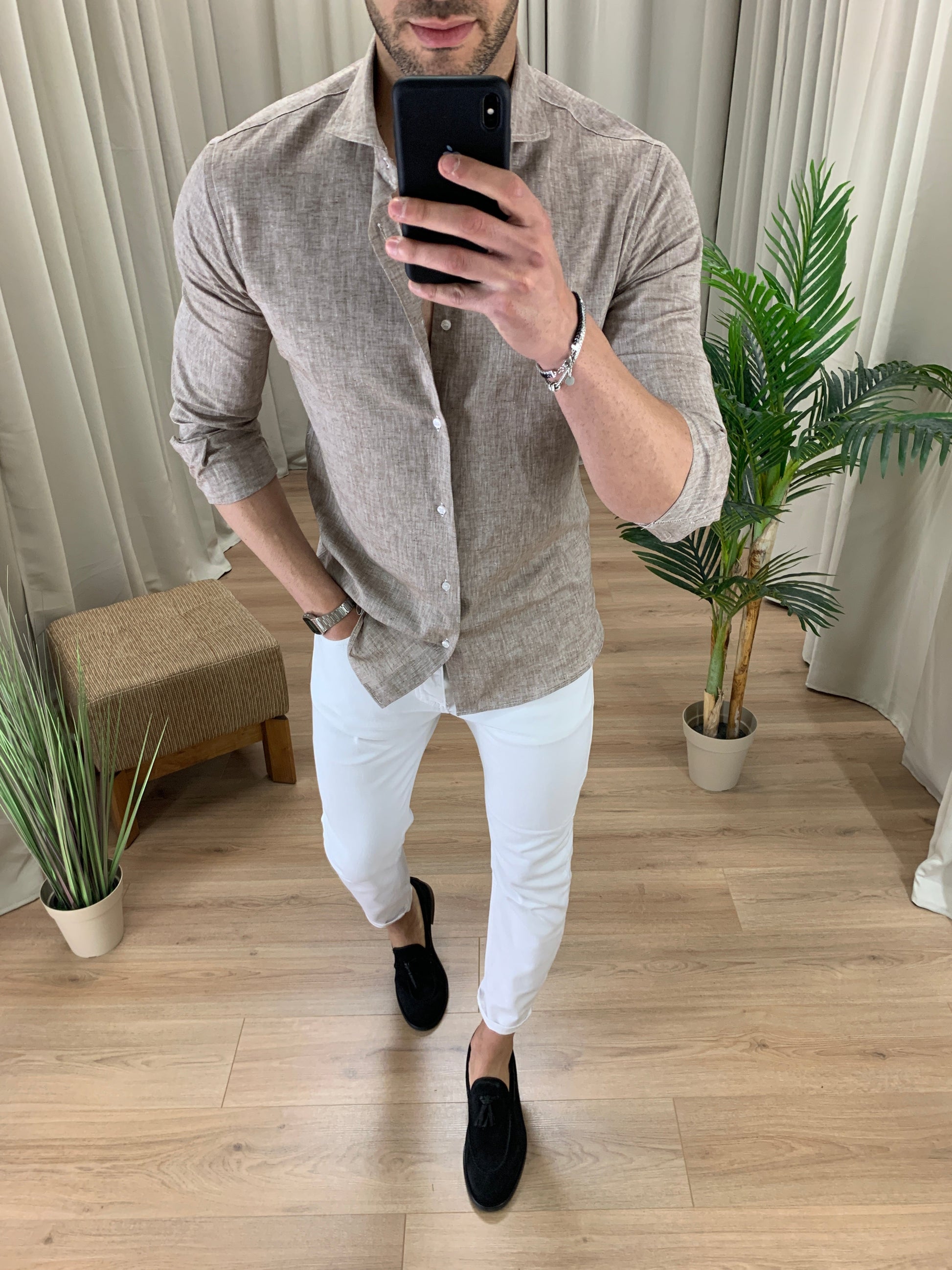 Camicia Santiago in Lino collo classico col. Tortora