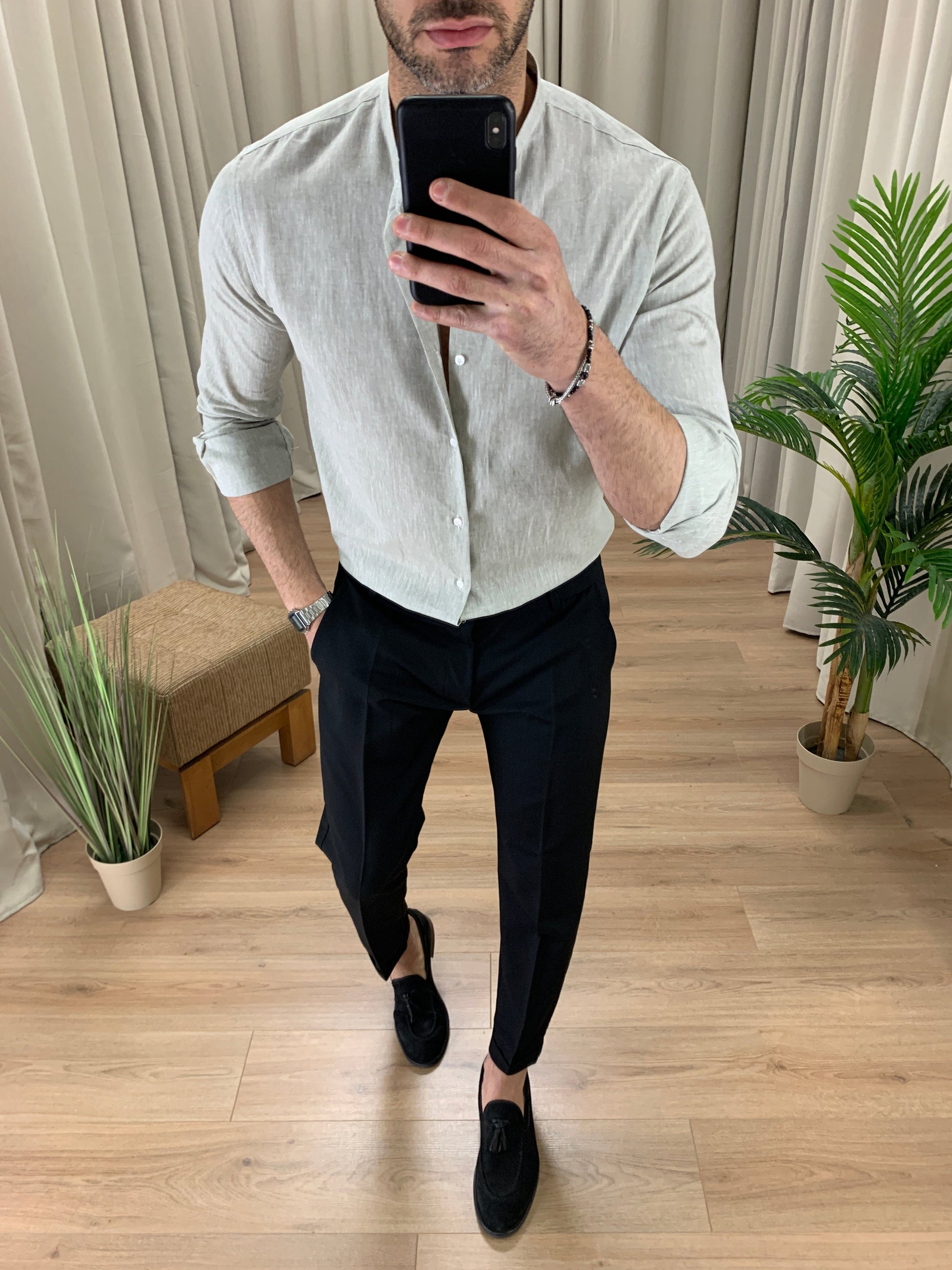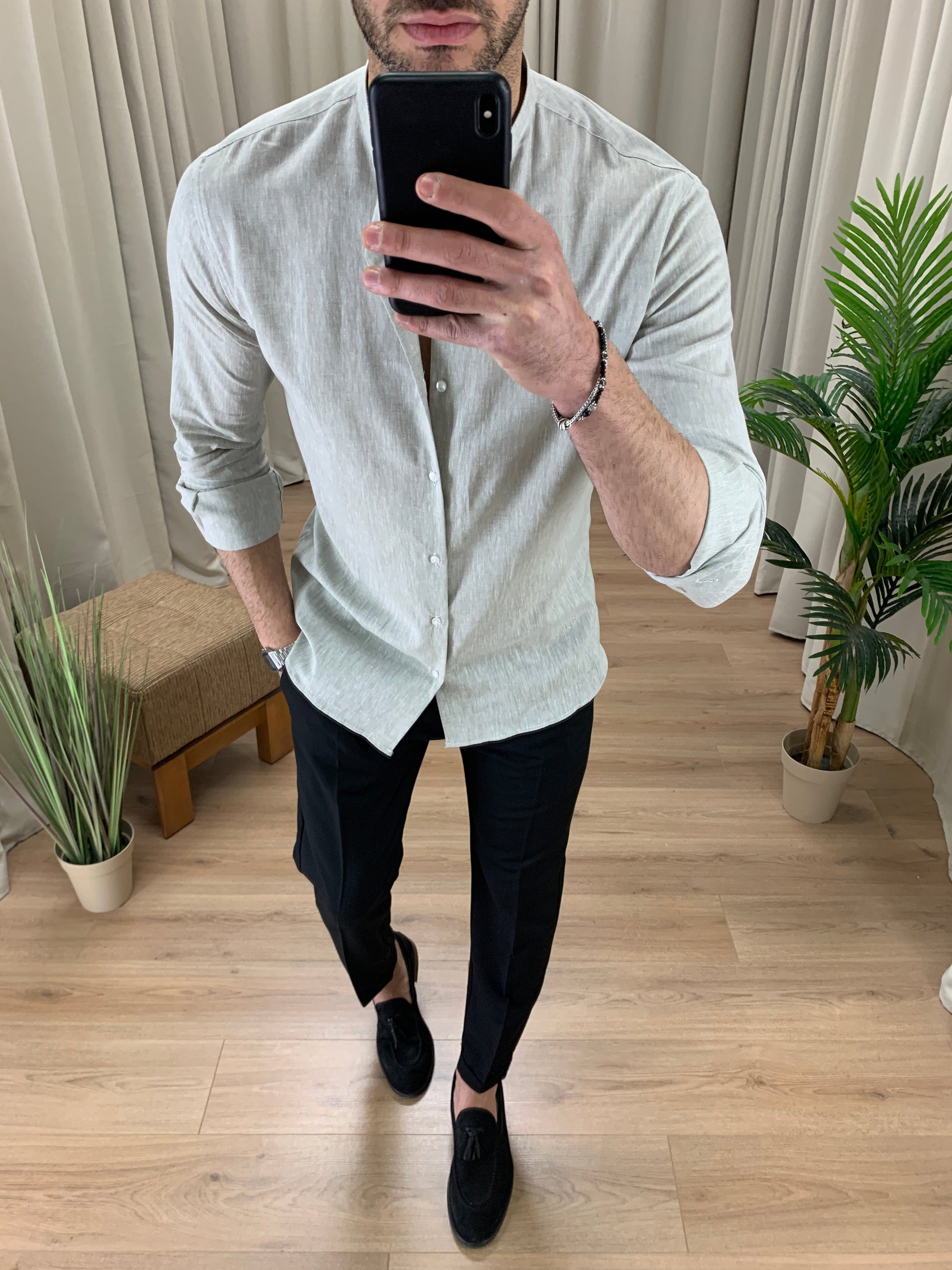 Camicia Taormina in Lino collo alla coreana col. Salvia