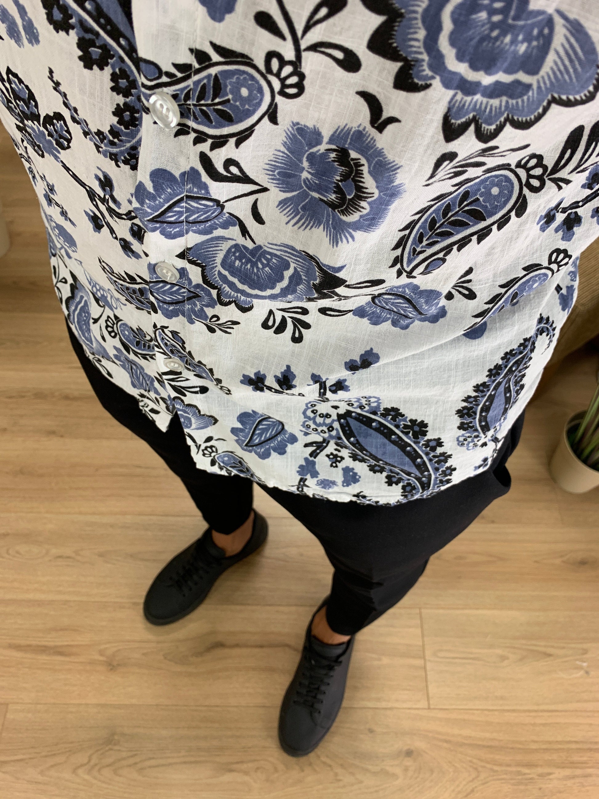 Camicia Tenk con fantasia effetto Lino col. Bianco