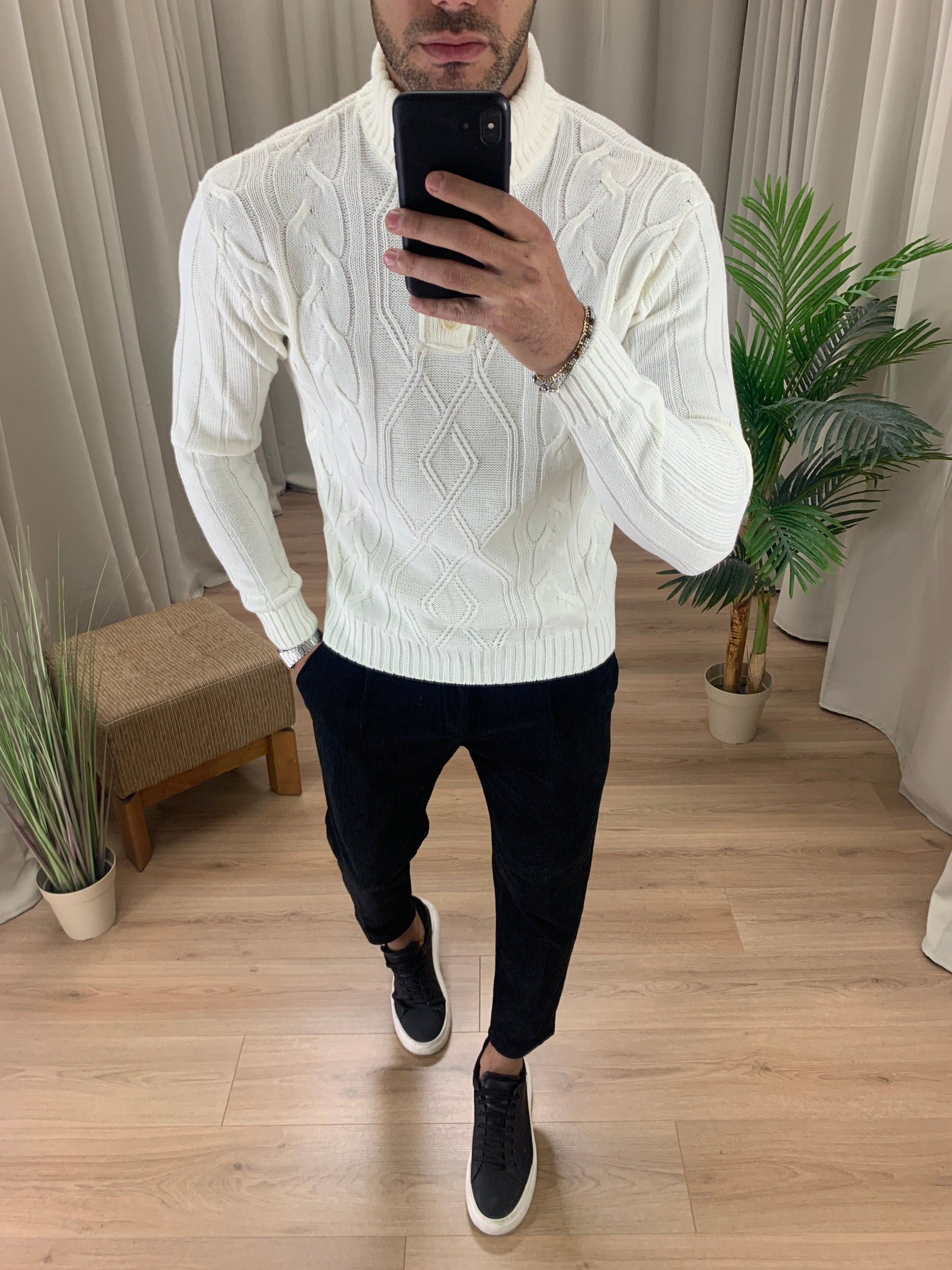 Maglioncino Absolu collo lupetto con bottoni col. Bianco
