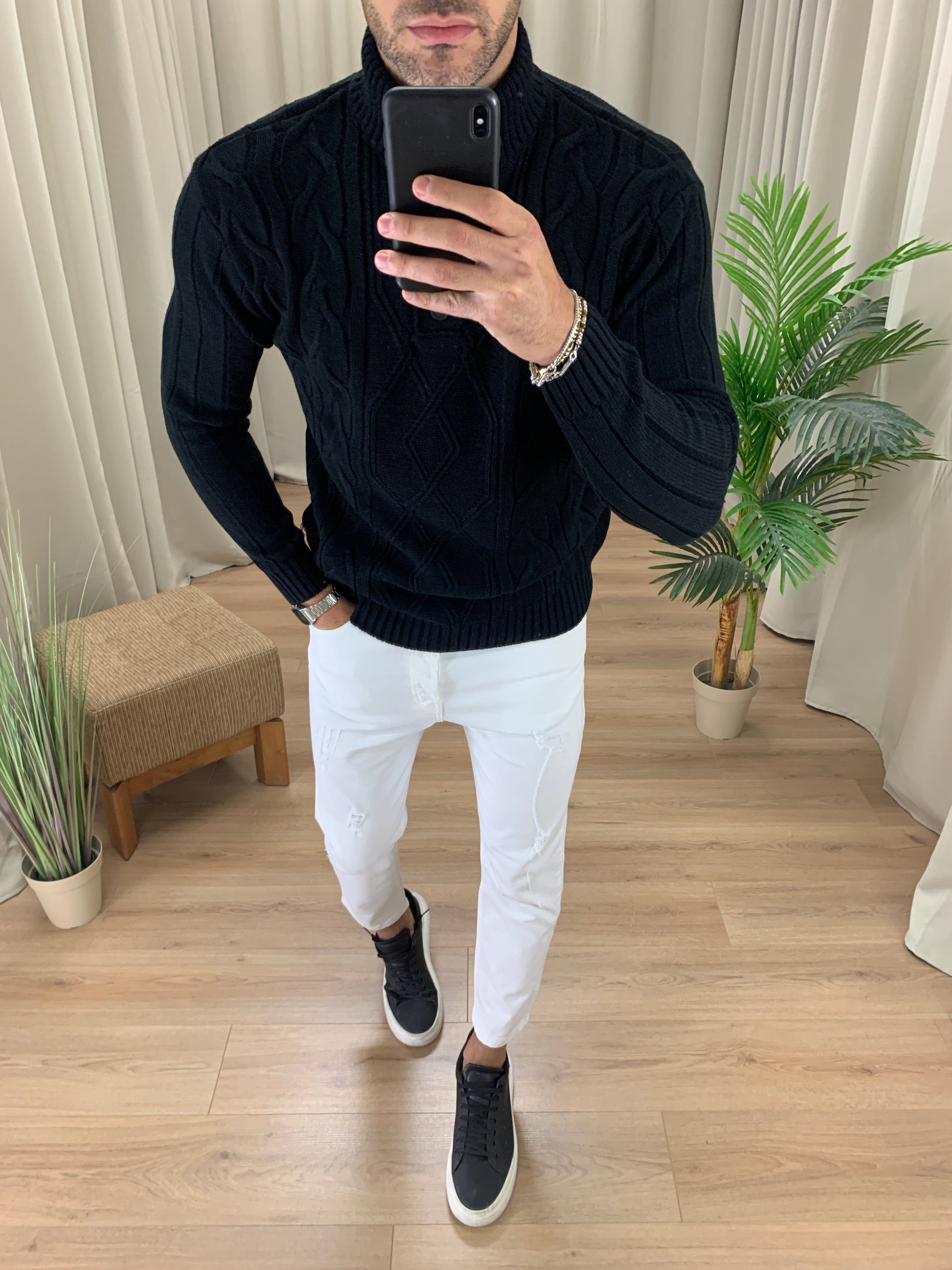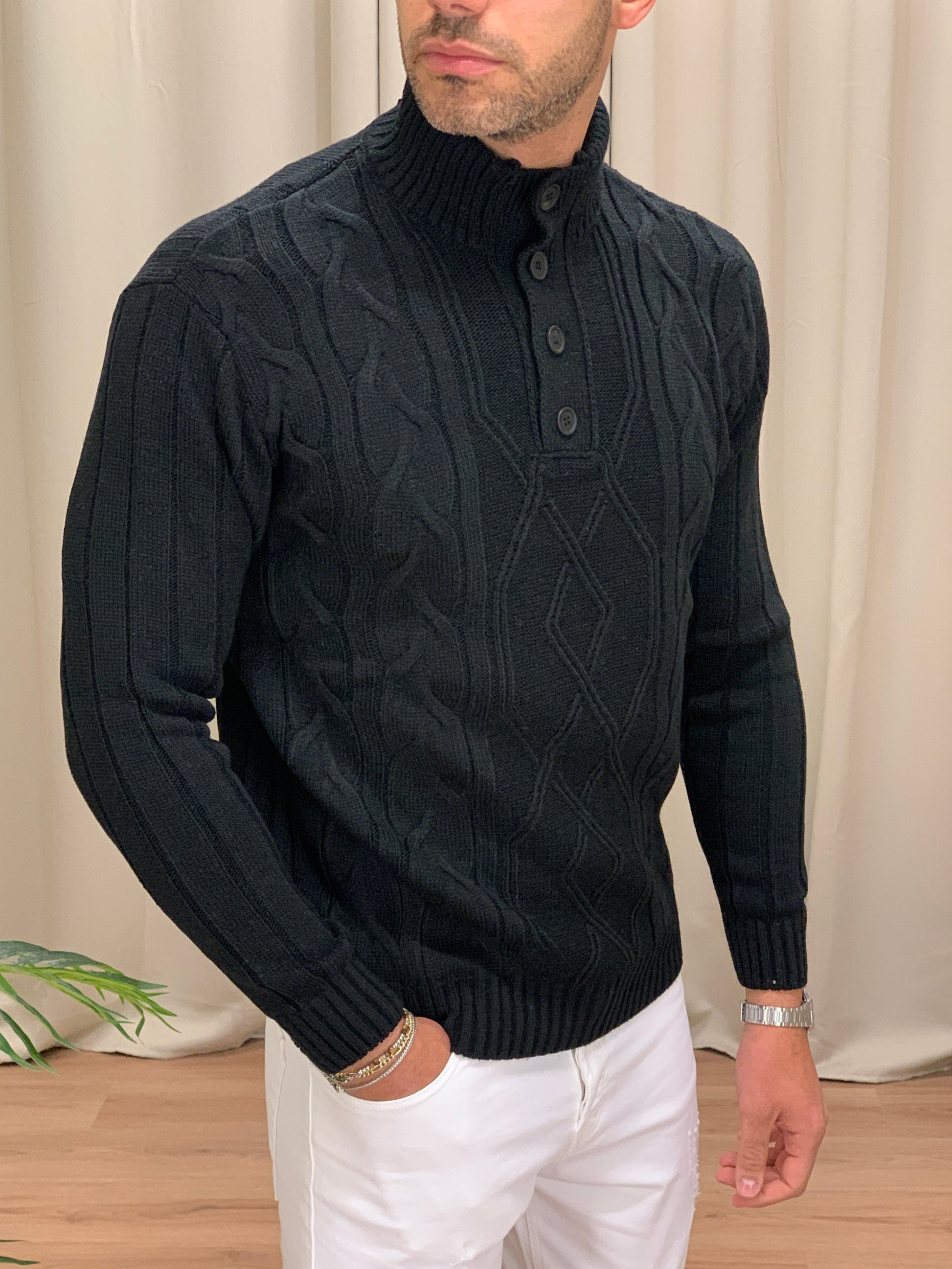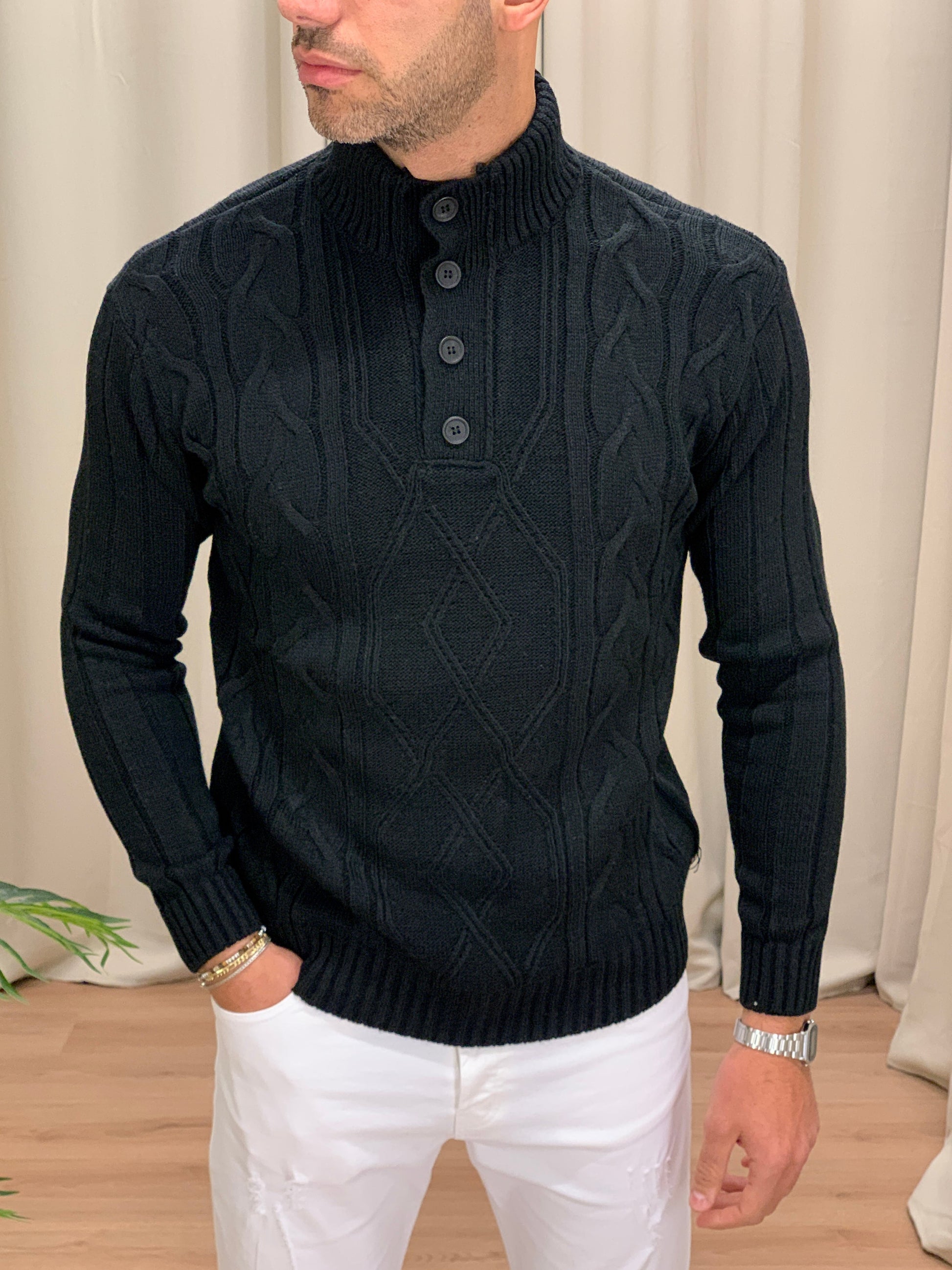 Maglioncino Absolu collo lupetto con bottoni col. Nero
