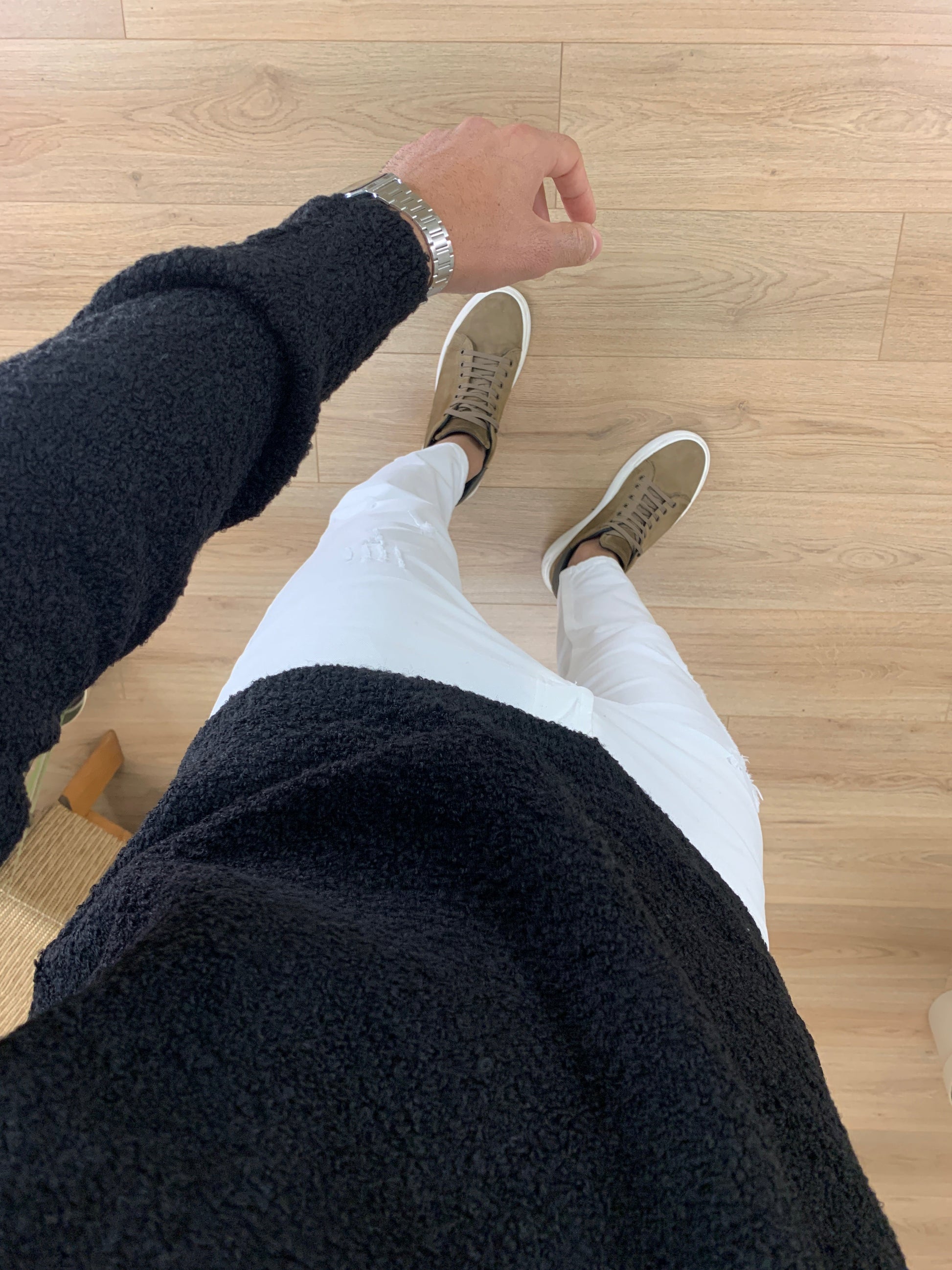 Il modello è alto 189 cm e pesa 89 Kg. Indossa taglia L.