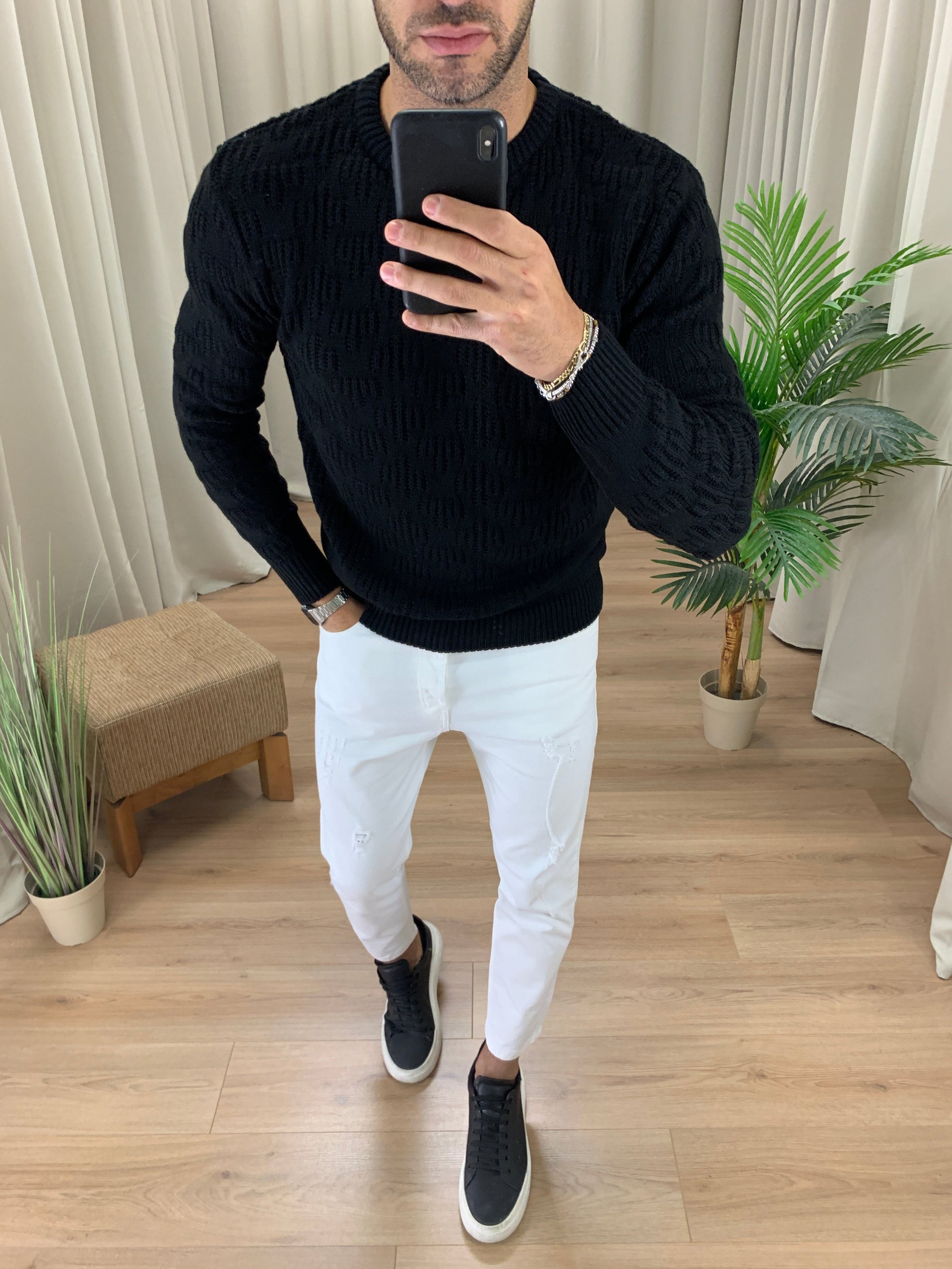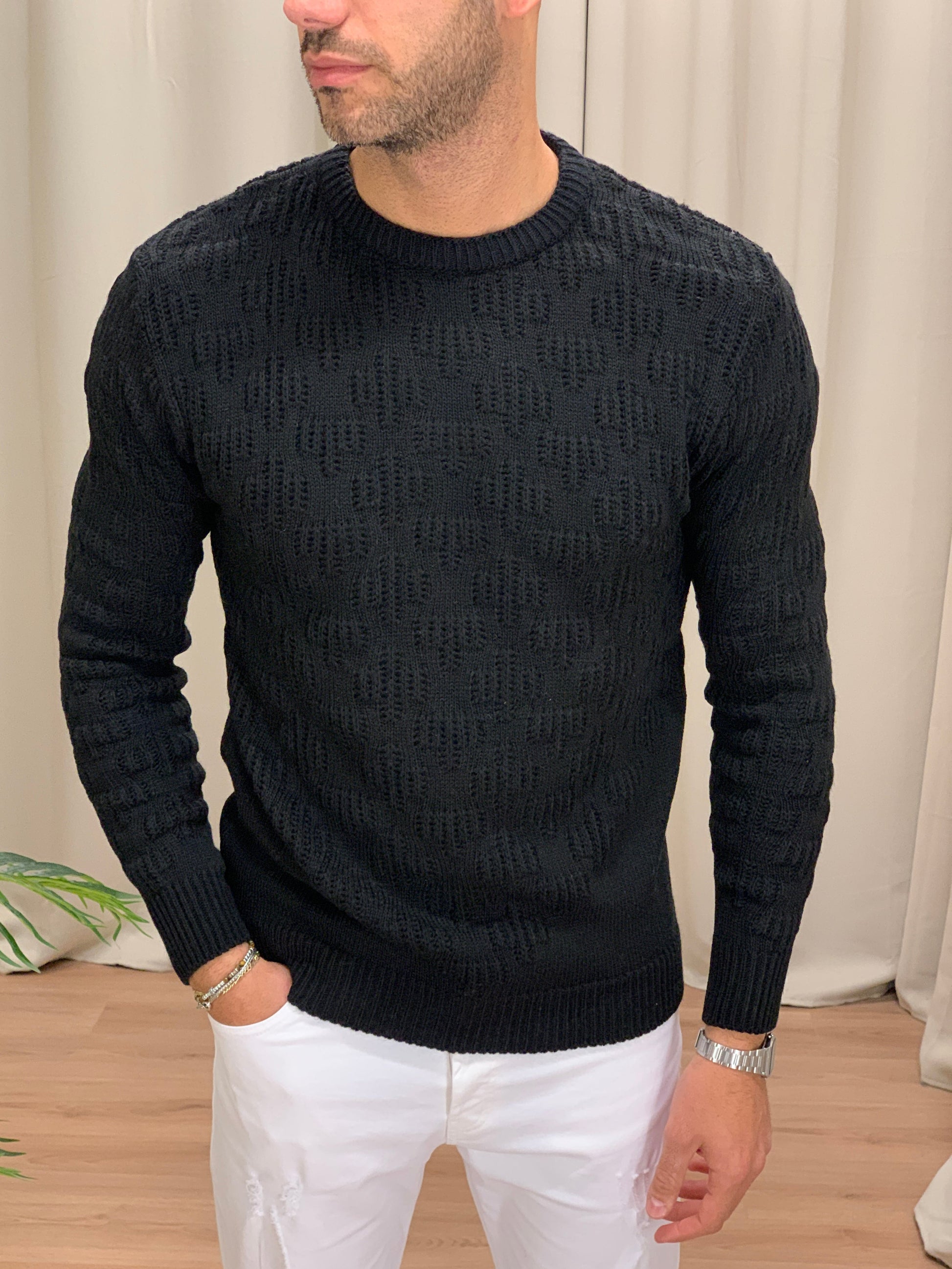 Maglioncino Harder girocollo con Trama col. Nero