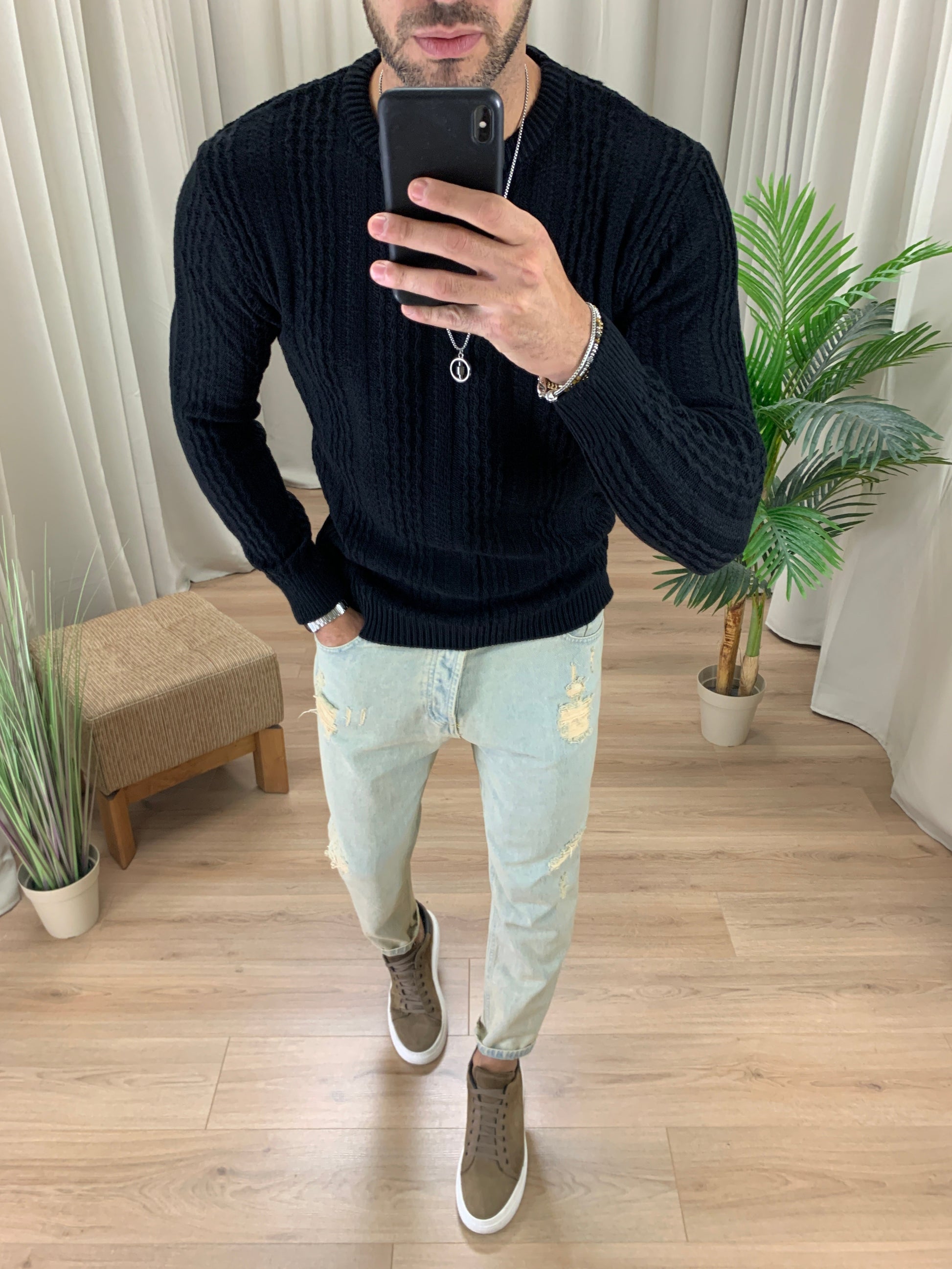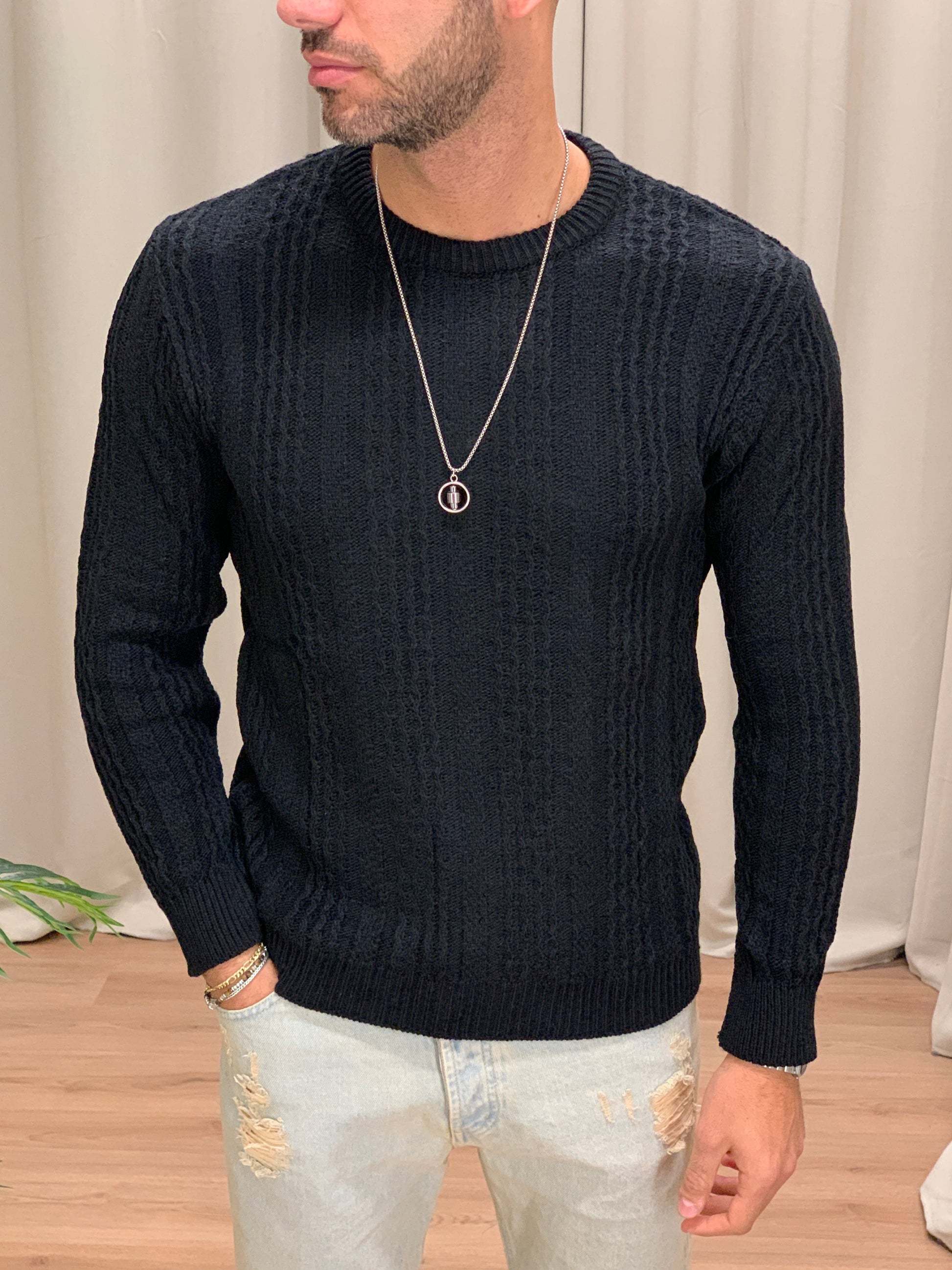 Maglioncino Labo con trama a Treccia col. Nero