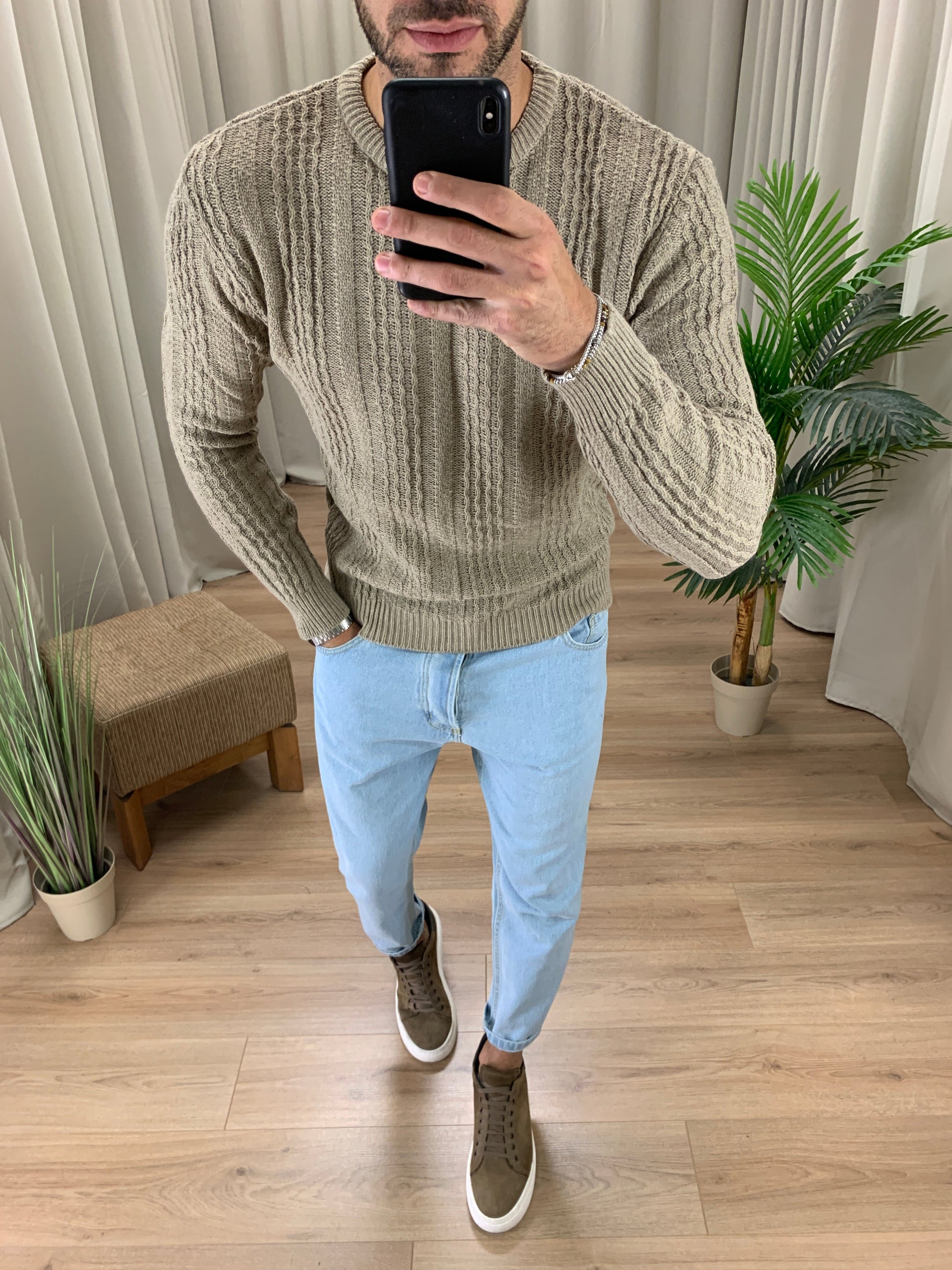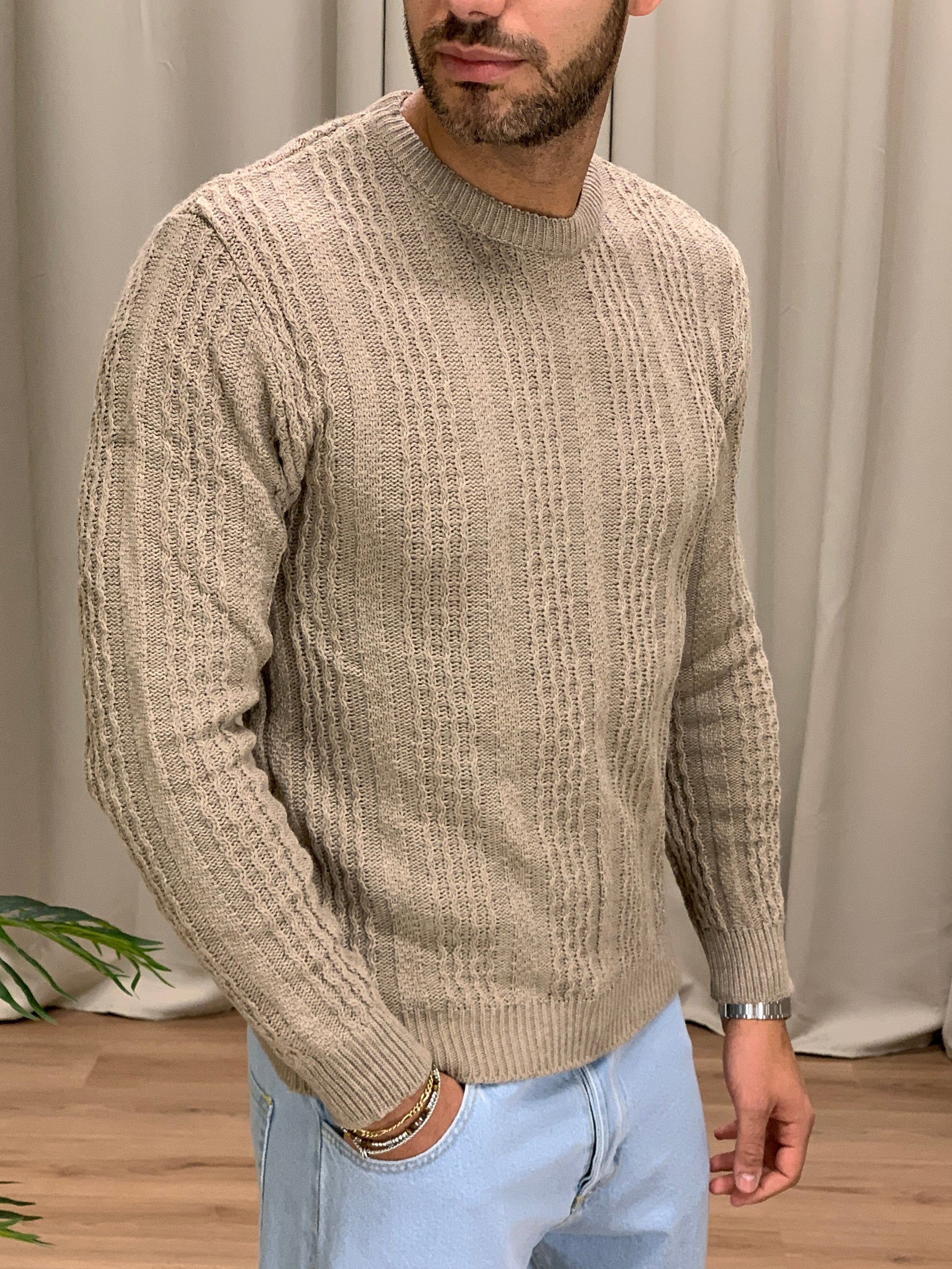 Maglioncino Labo con trama a Treccia col. Nocciola