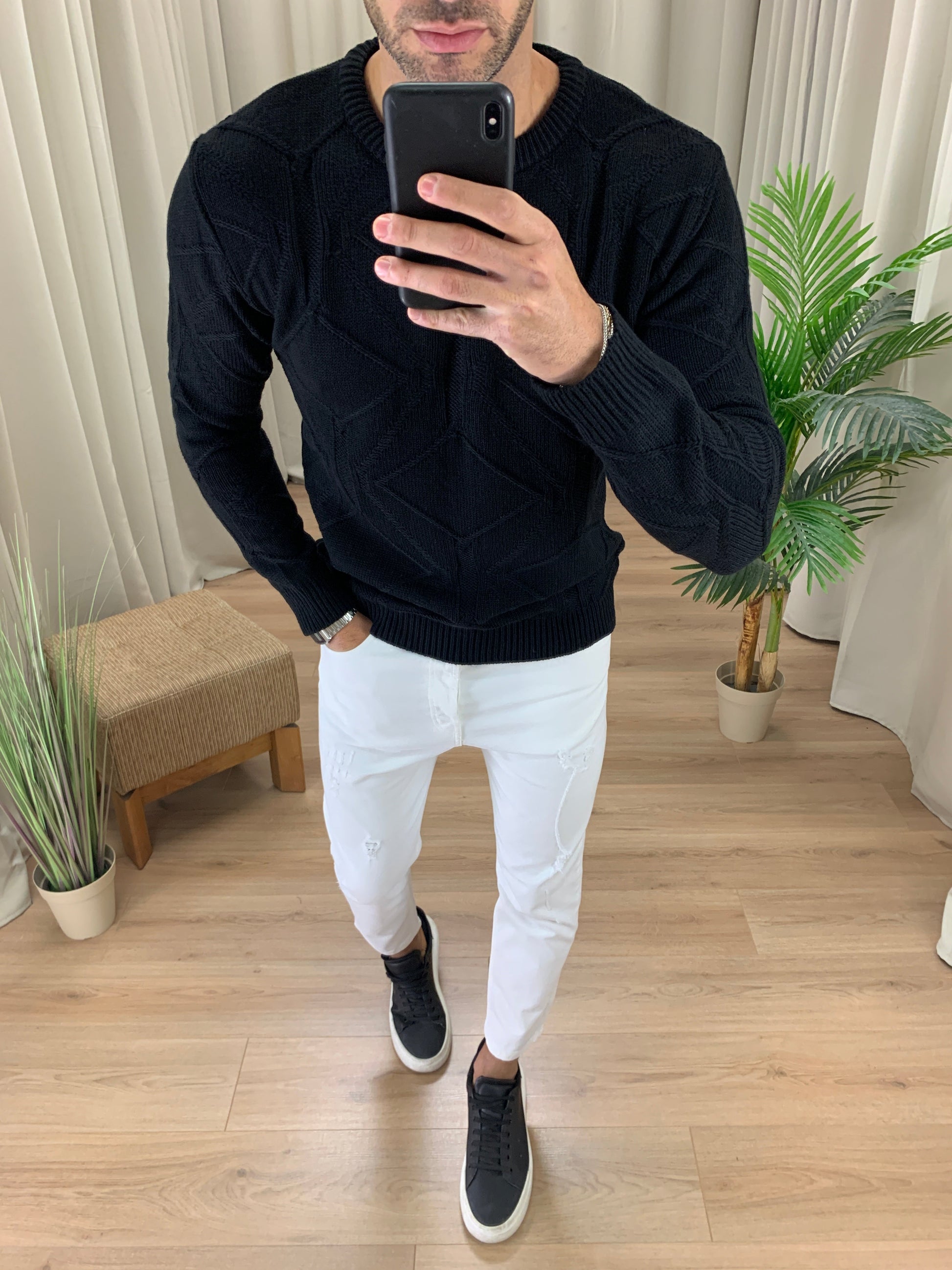 Maglioncino Lionel con Trama a Rombi col. Nero