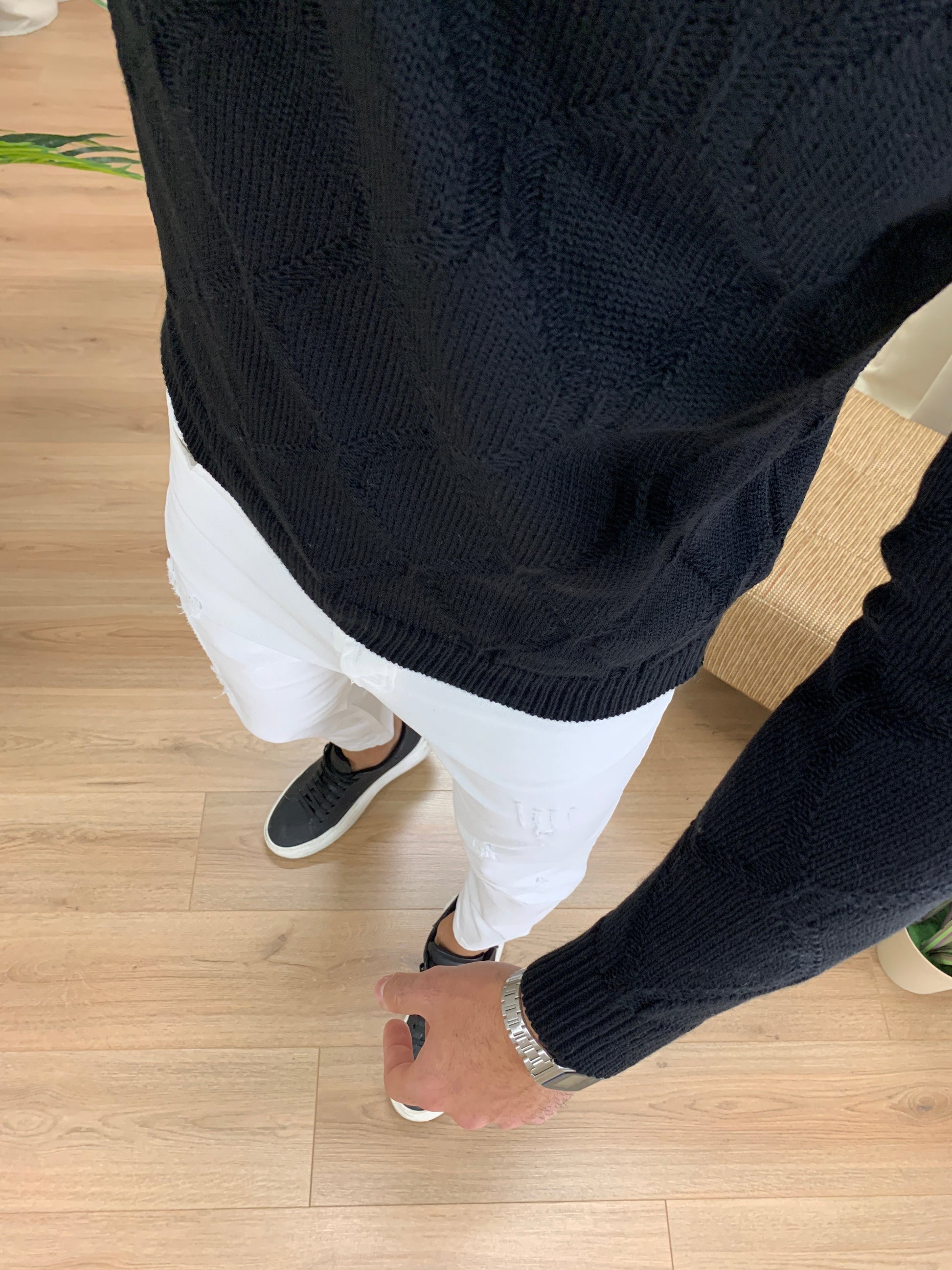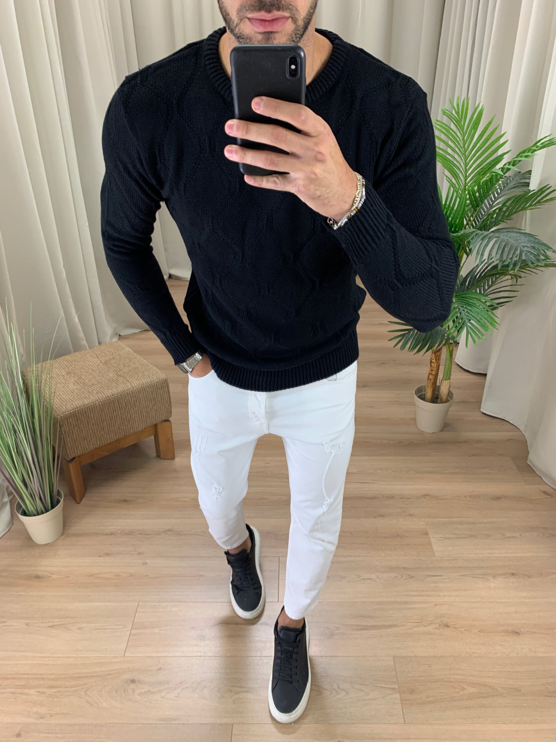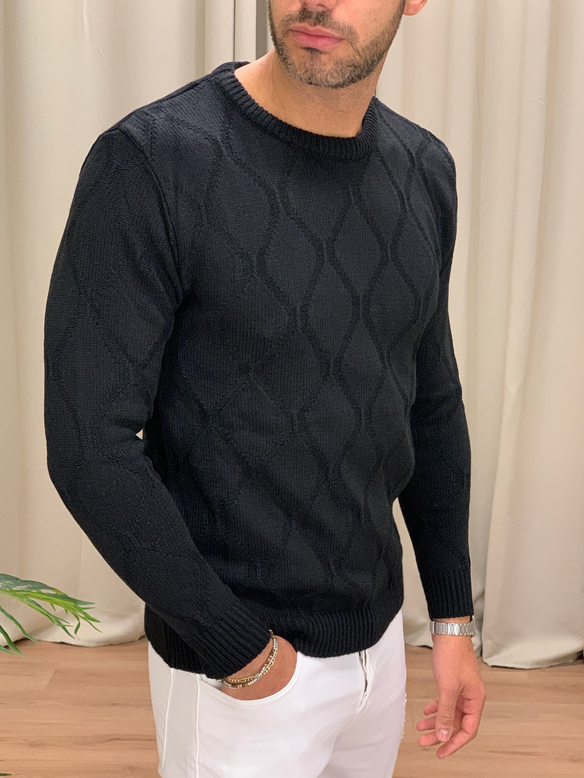 Maglioncino Pharrel girocollo con Trama col. Nero