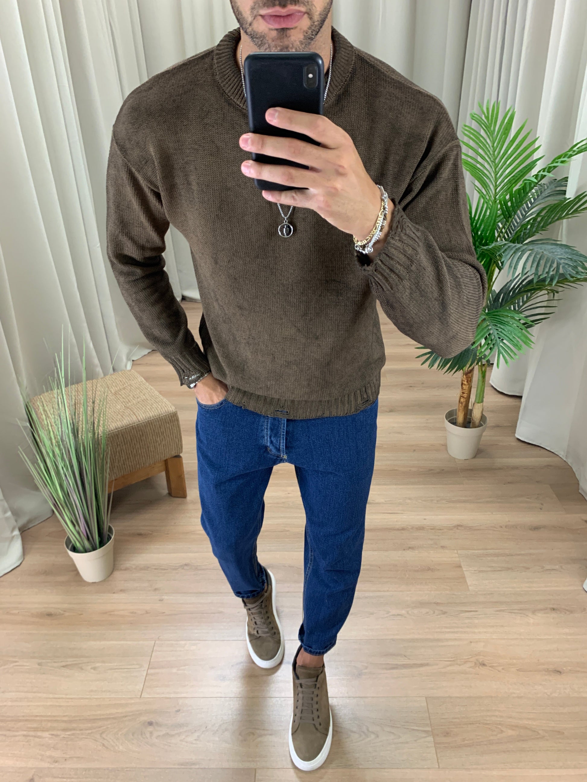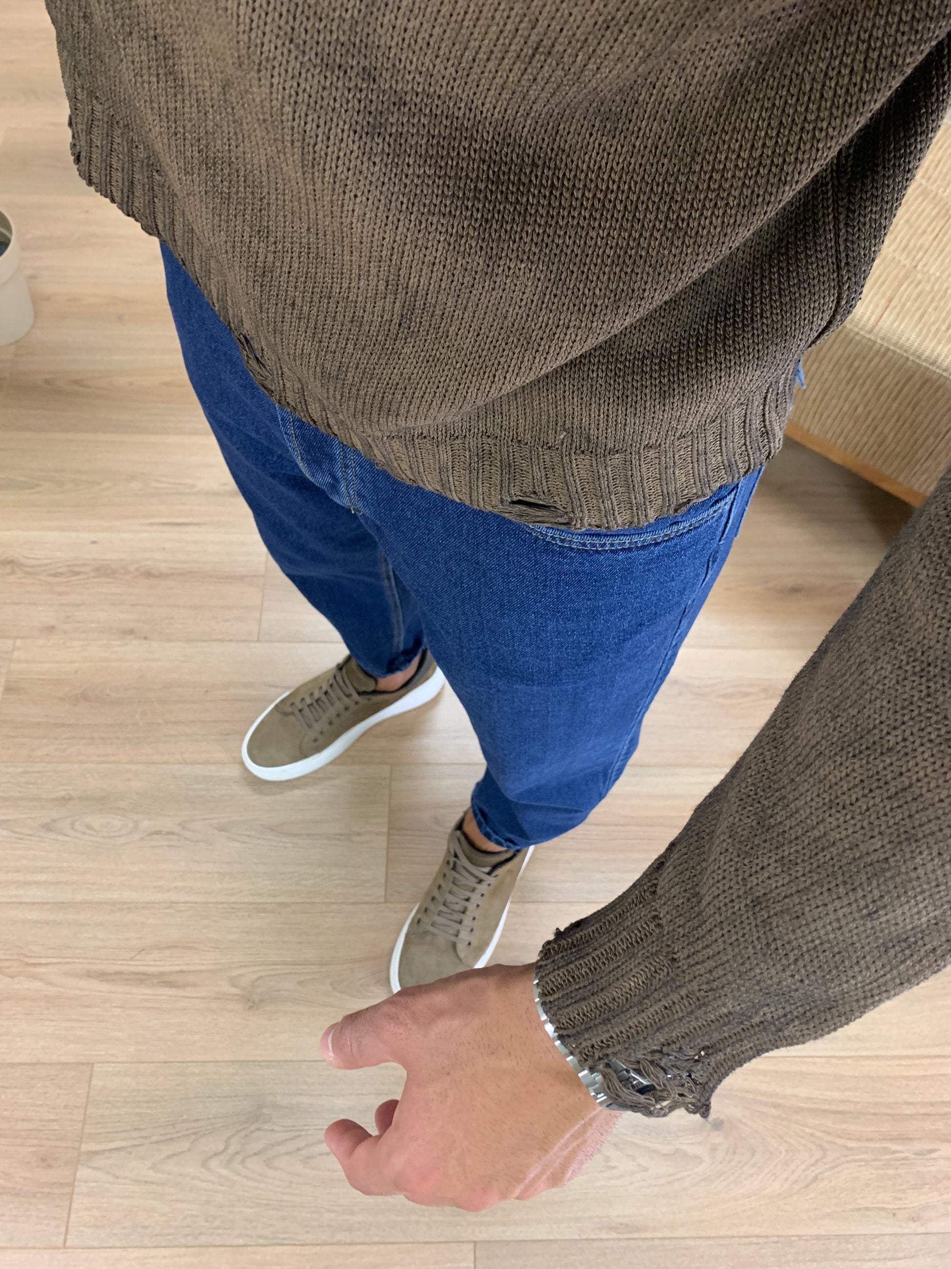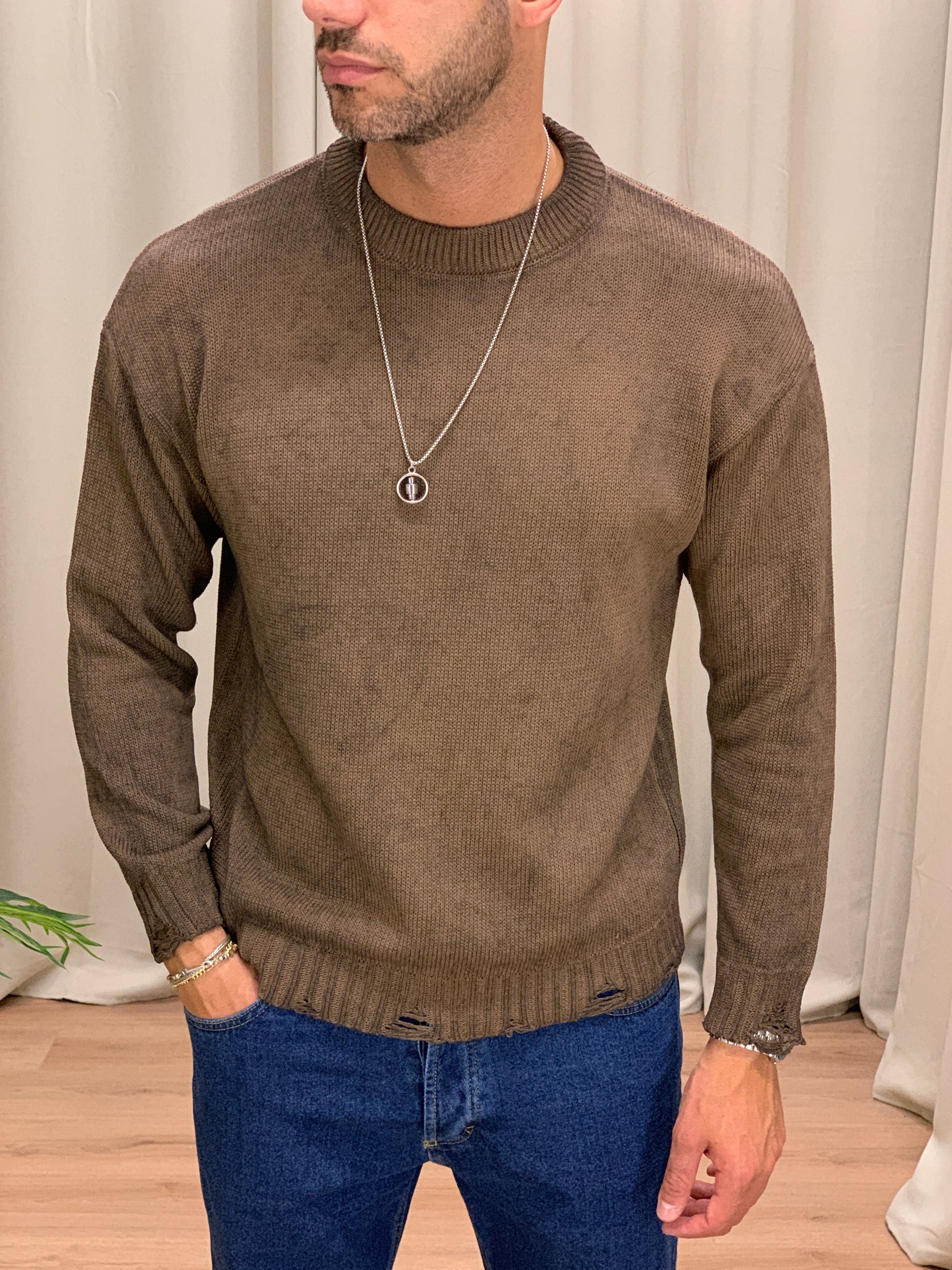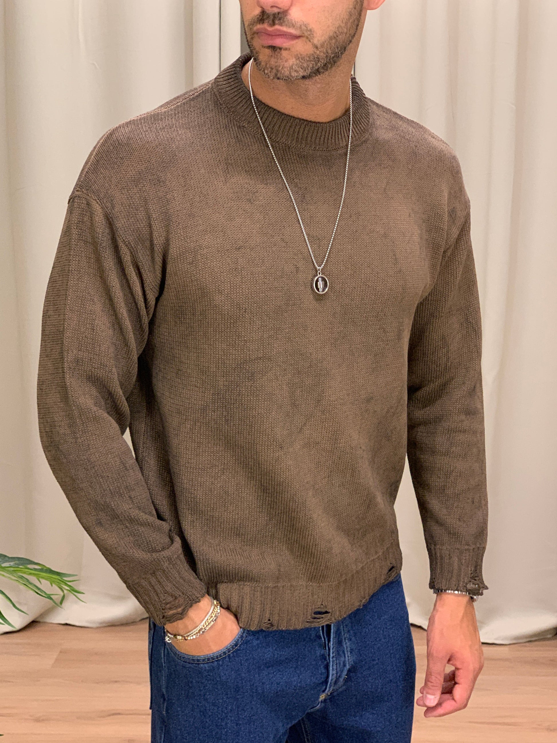 Maglioncino Slavato con Fondo Sfrangiato col. Marrone