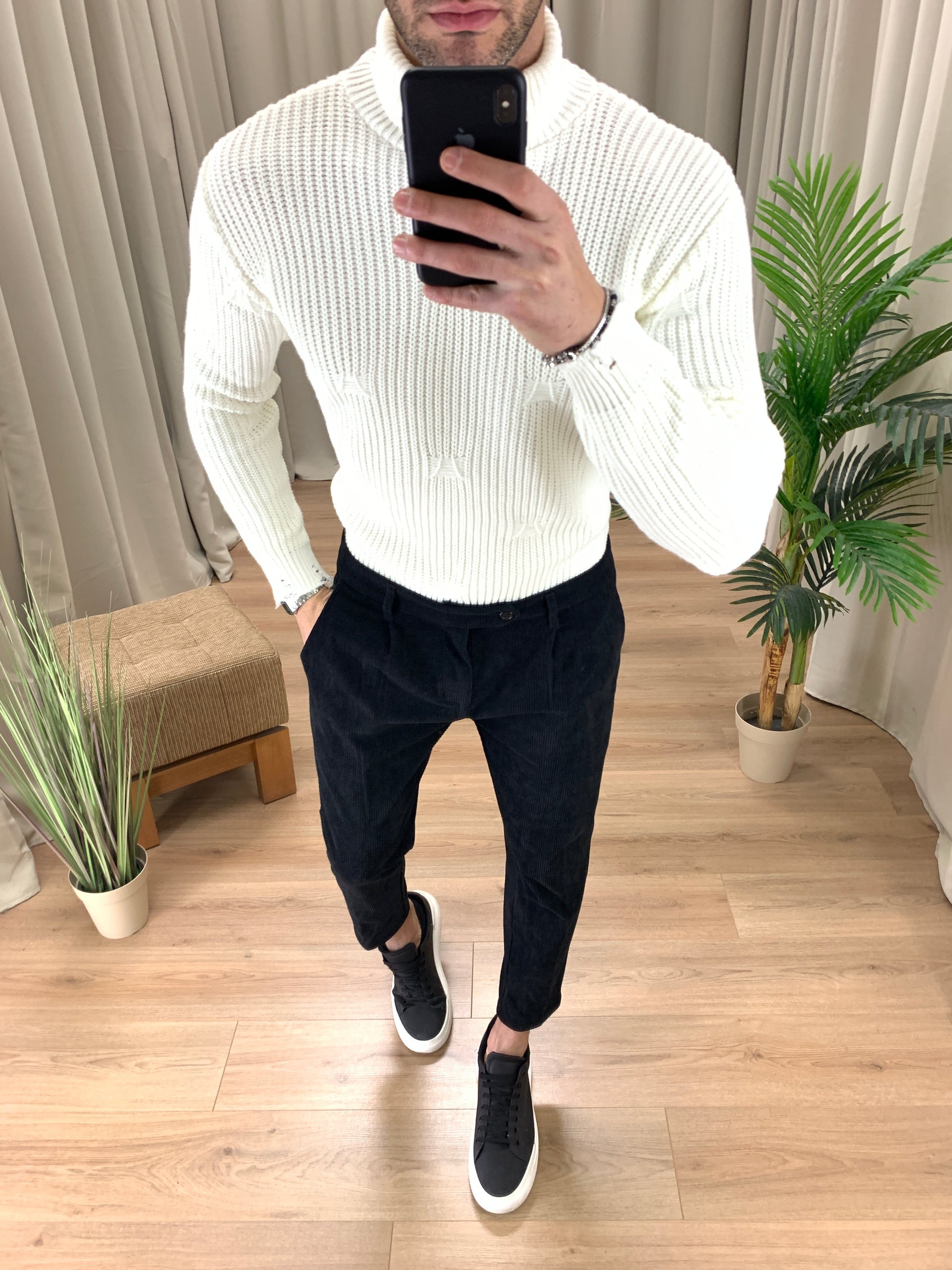 Il modello è alto 189 cm e pesa 89 Kg. Indossa la taglia 50