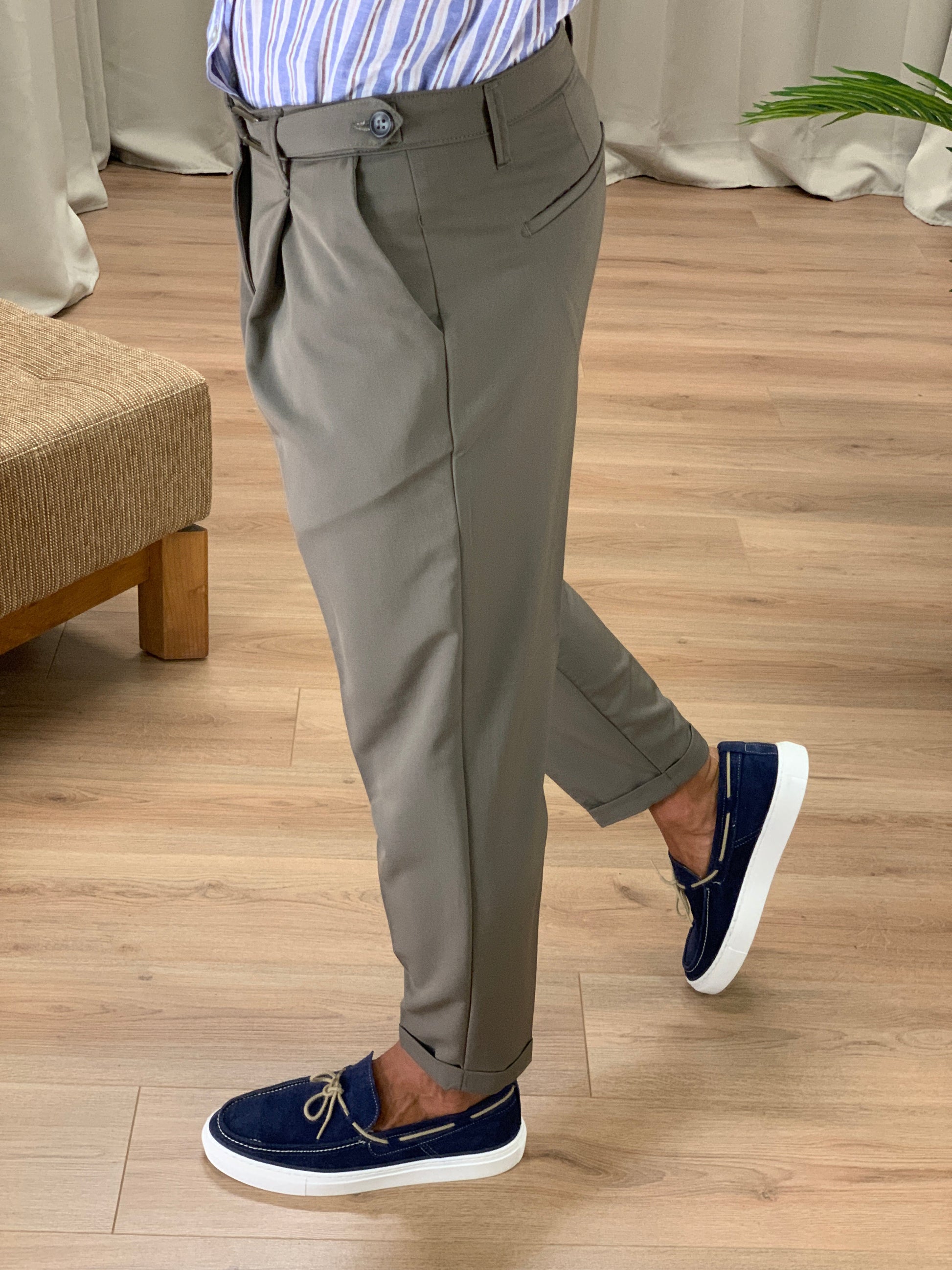 Pantalone Trieste con Fibbia e Pinces col. Tortora